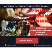 Une belle collaboration avec le Fitsanté de St-Romuald nous permet d'acceuillir nos groupes en spinning autant pour la mise en forme que pour la préparation de nos défis sportifs.