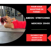 Abdos-Stretching en direct sur zoom et aussi en rediffusion.