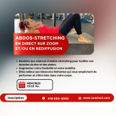 - Mercredi 20h00 Abdos-Stretching en direct sur zoom et aussi en rediffusion.