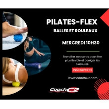 C'est aussi un moment privilégié d'apprentissage avec CoachC2 qui vous guidera dans la découverte des points à masser et aussi de vos objectifs de relaxation et d'étirements. Séance dirigée en pilates et en massage avec balles et rouleaux.